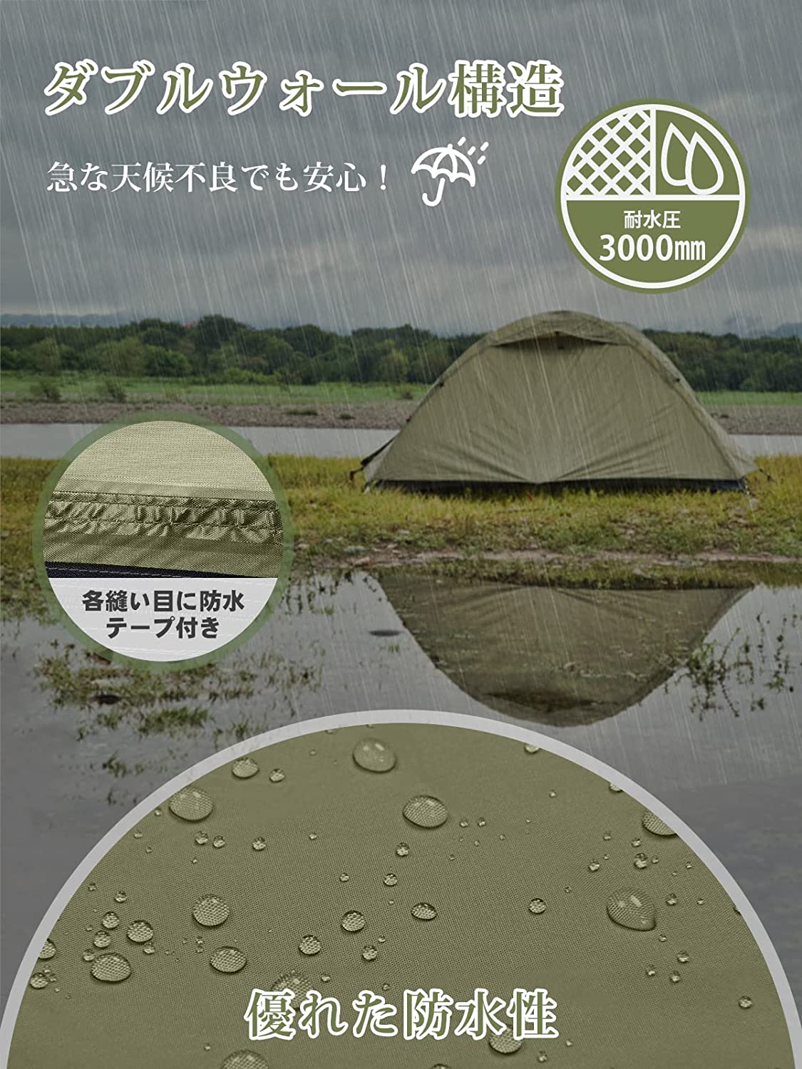 テント ツーリングドーム 二重層 耐水圧3000mm